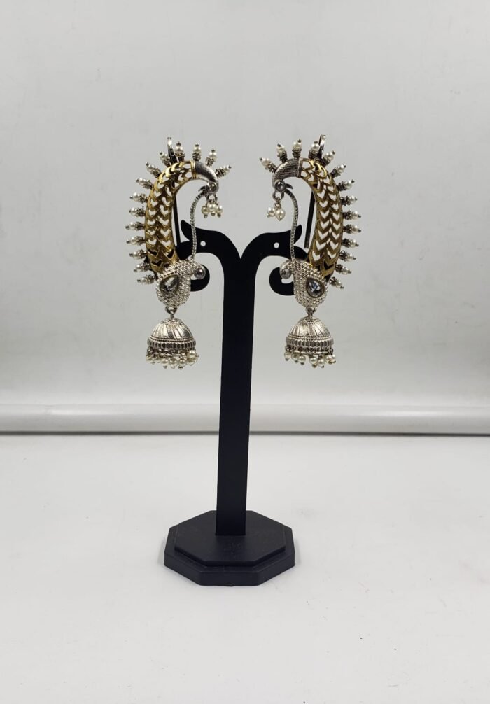 Silver Replica Jhumka Ear Ring With Pearl Beads