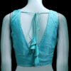 This is a Sky Blue Color Organza Blouse. This Blouse is Sweetheart Neckline in Frontside and V-Neckline in Backside with Tie-Up. This is a Princess Cut, Padded, Sleeveless Blouse with Back Open. You can team it up with any contrast colored Printed or Traditional Saree.