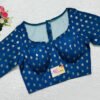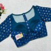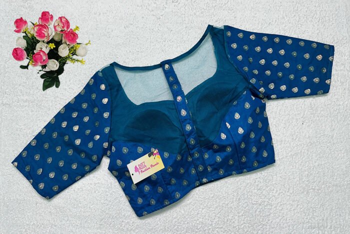 This is a Turquoise Blue Color Chanderi Silk Blouse. This Blouse is Sweetheart Neckline in Frontside & Illusion High Neckline in Backside. This is a Princess Cut, Padded, Glass Sleeve Blouse with Back Open. You can team it up with any contrast-colored Traditional/Printed Saree.