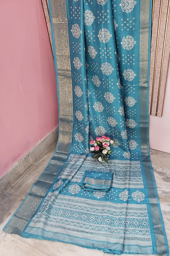 Turquoise Blue Color Bapta Silk Saree.