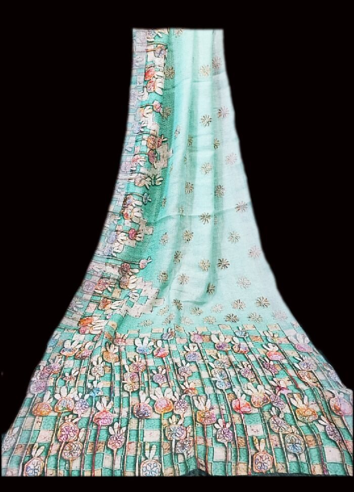 Green Color Linen Saree.