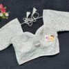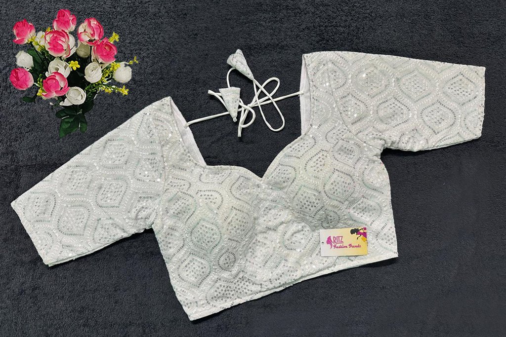 This is a White Color Georgette Embroidered Blouse. This is Sweetheart Neckline in Frontside & V-Neckline in Backside with Tie-Up. This is a Princess Cut, Padded, Glass Sleeve Blouse with Back Open. You can team it up with any contrast-colored Traditional/Printed Saree.