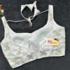 This is a White Color Jimmy Choo Embroidered Blouse. This is Sweetheart Neckline in Frontside & Leaf Neckline in Backside with Tie-Up. This is a Princess Cut, Padded, Sleeveless Blouse with Back Open. You can team it up with any contrast-colored Traditional/Printed Saree.