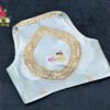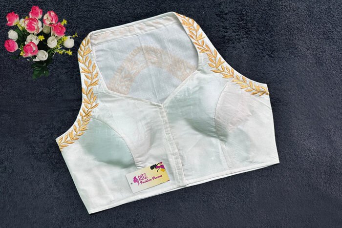 This is a White Samo Silk Embroidered Blouse. This is Halter Neckline in Frontside & High Neckline in Backside. This is a Princess Cut, Padded, Sleeveless Blouse with Front Open. You can team it up with any contrast-colored Traditional/Printed Saree.