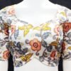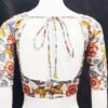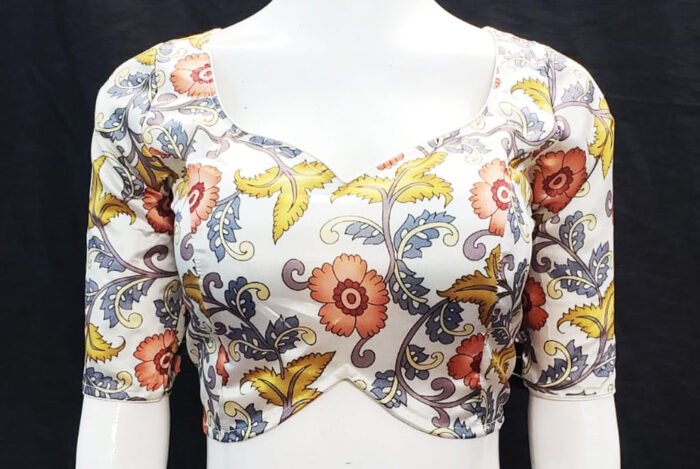 This is a White Multi Color Litchi Silk Blouse. This Blouse is Sweet Heart Neckline in Frontside & U-Neckline in Backside with Tie-Up. This is a Princess Cut, Padded Blouse. This Blouse is Glass Sleeve and Back Open. You can team it up with any contrast-color Traditional/Fancy Saree.