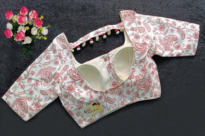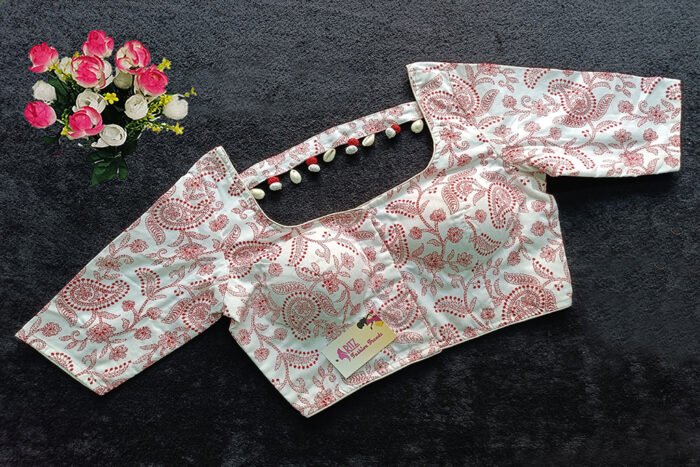 This is a White & Red Color Cotton Printed Blouse. This Blouse is Rounded Square Neckline in Frontside & U-Neckline in Backside with a Band. This is a Princess Cut, Padded, Glass Sleeve Blouse with Front Open. You can team it up with any contrast-colored Traditional/Printed Saree.
