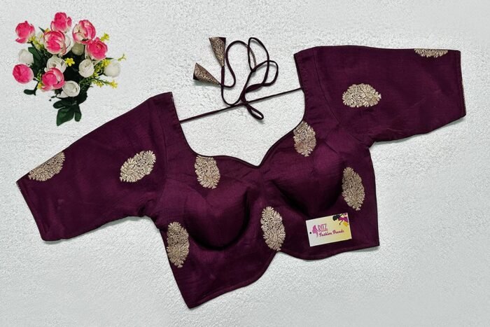 This is a Wine Color Russian Silk Blouse. This is Sweetheart Neckline in Frontside & U-Neckline in Backside with Tie-Up. This is a Princess Cut, Padded, Glass Sleeve Blouse with Back Open. You can team it up with any contrast-colored Traditional/Printed Saree.