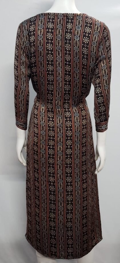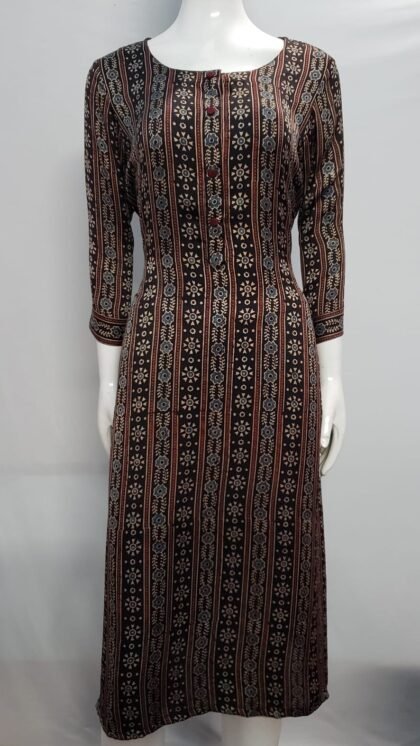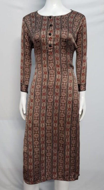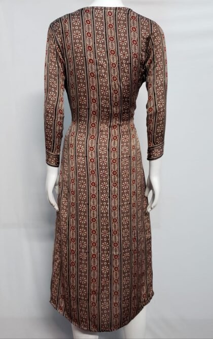 Brown Color Modal Silk Ajrakh Printed Kurti
