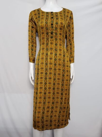 Yellow Color Modal Silk Ajrakh Printed Kurti