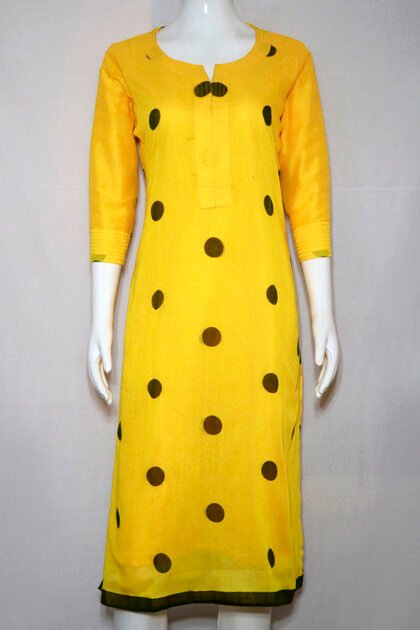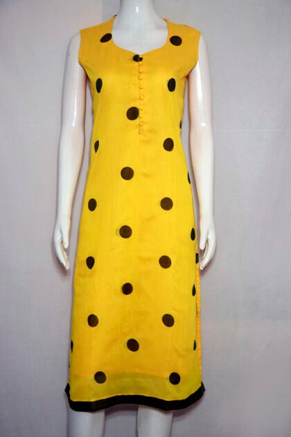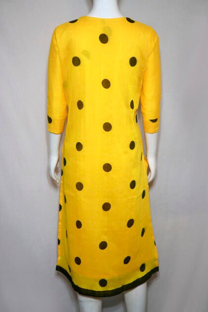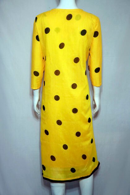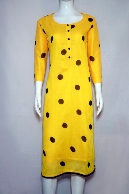 Dandelion Yellow Color Cotton Kurti With Large Polka Dot Digital Print