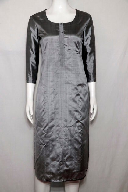 Poppy Seed Grey Color 3Ply Pure Silk Kurti with Nice Dual Tone Texture