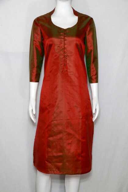 Crimson Red Color 3Ply Pure Silk Kurti with Nice Dual Tone Texture