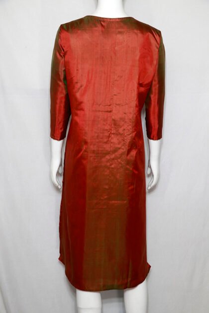 Crimson Red Color 3Ply Pure Silk Kurti with Dual Tone Texture