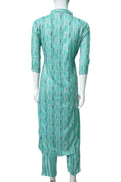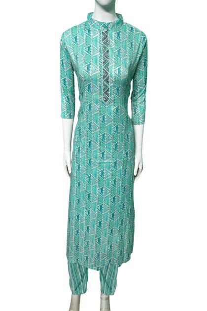 Sea Green Color Rayon Printed Kurti Set