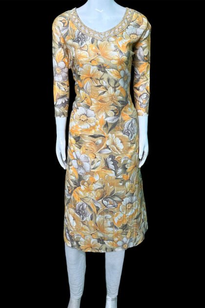 Yellow Color Rayon Printed Kurti